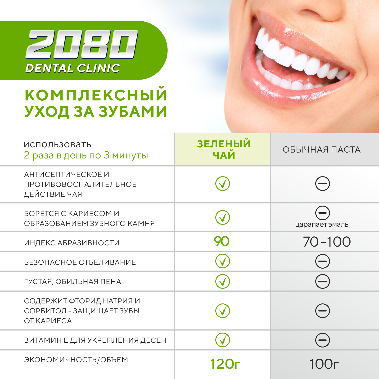 СохранитьDental Clinic 2080 Набор Зубная паста против кариеса Зеленый чай, 2 шт х 120 интересное: