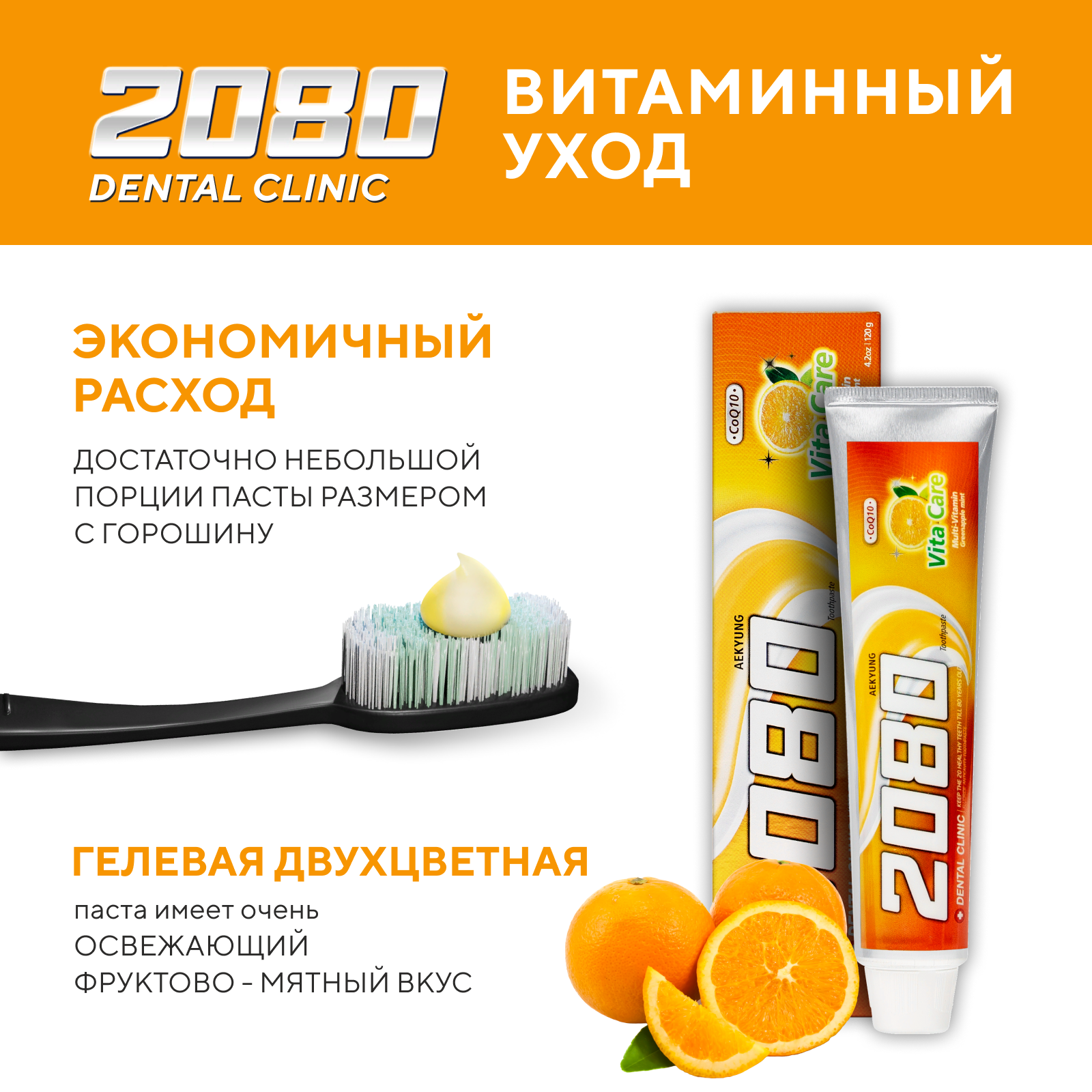 Купить Dental Clinic 2080 Набор Зубная паста освежающая против кариеса Витаминный уход с коэнзимом Q10 и фтором, 2 шт х 120 гр