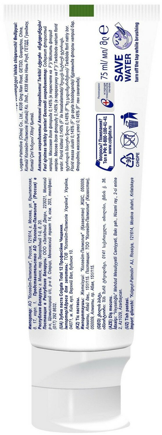 Зубная паста COLGATE TOTAL12 Профессиональная чистка, 75 мл