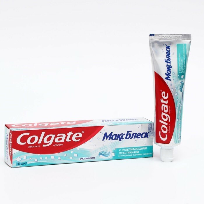 Зубная паста COLGATE Макс Блеск Кристальная мята с отбеливающими пластинками для свежего дыхания и отбеливания зубов, 100мл