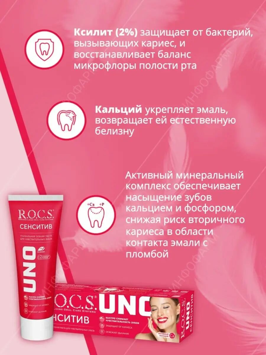 Купить R.O.C.S. Зубная паста Uno "Sensitive", 74г, 4 шт.