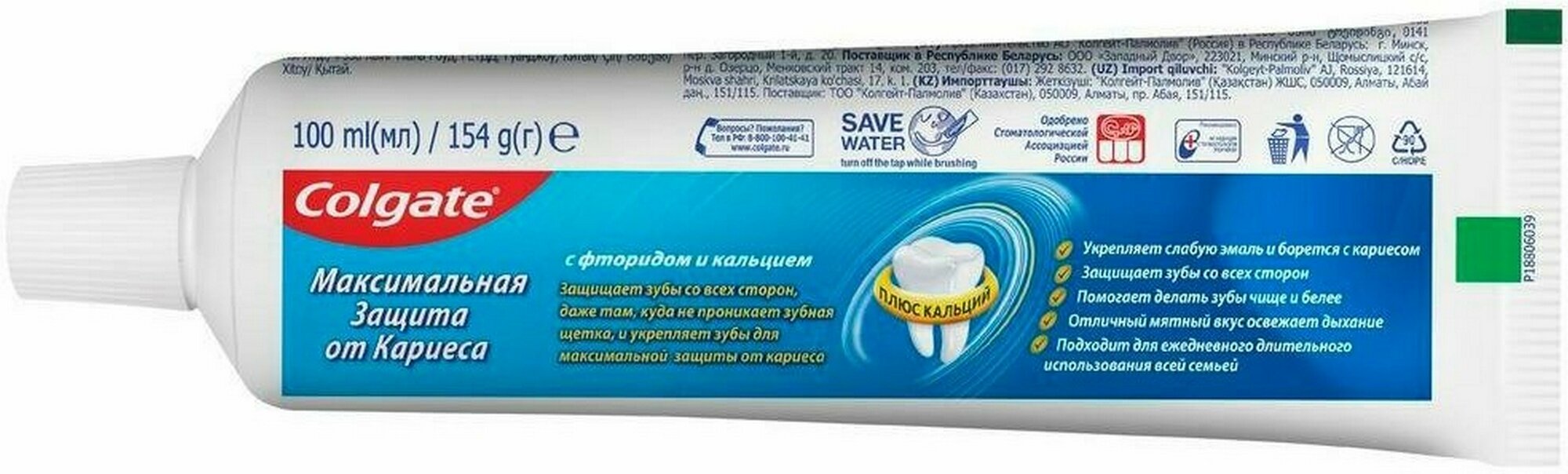 Colgate Зубная паста Максимальная защита от кариеса Свежая мята с комплексом кальция и фторида 100 мл - 1 шт