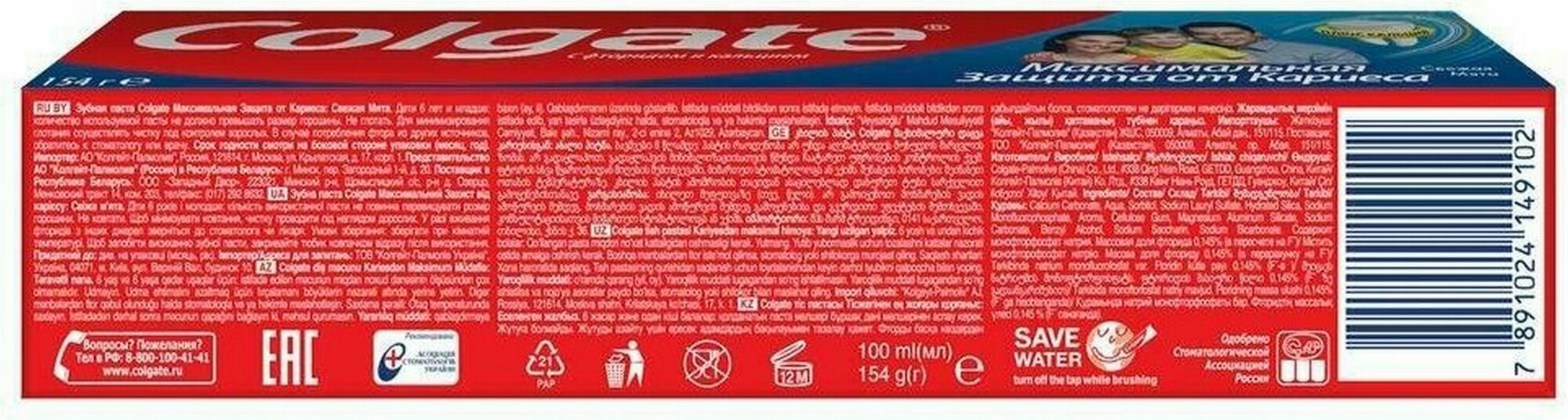 Colgate зубная паста Максимальная Защита от кариеса Свежая мята 150 мл. х 6 шт.