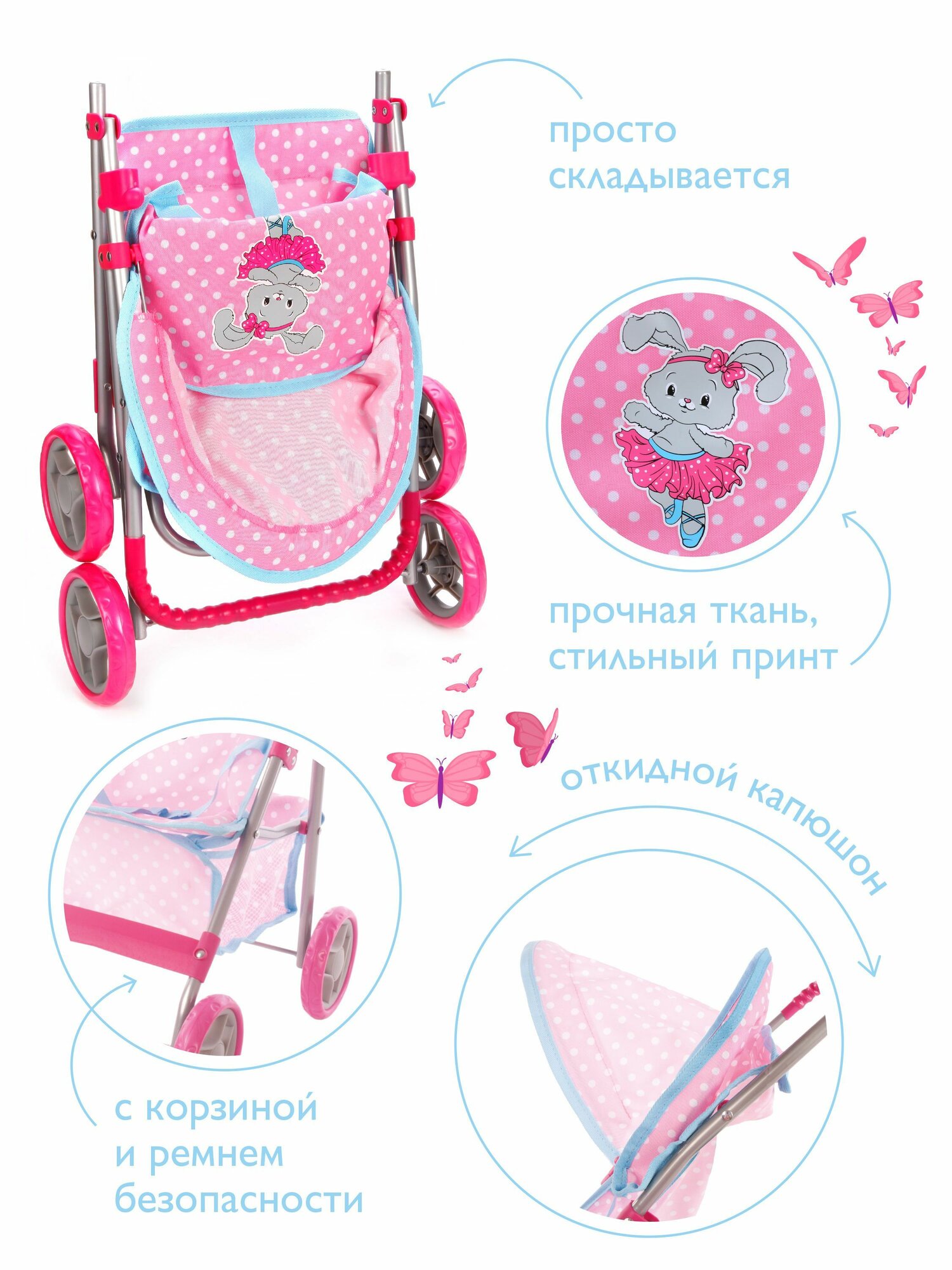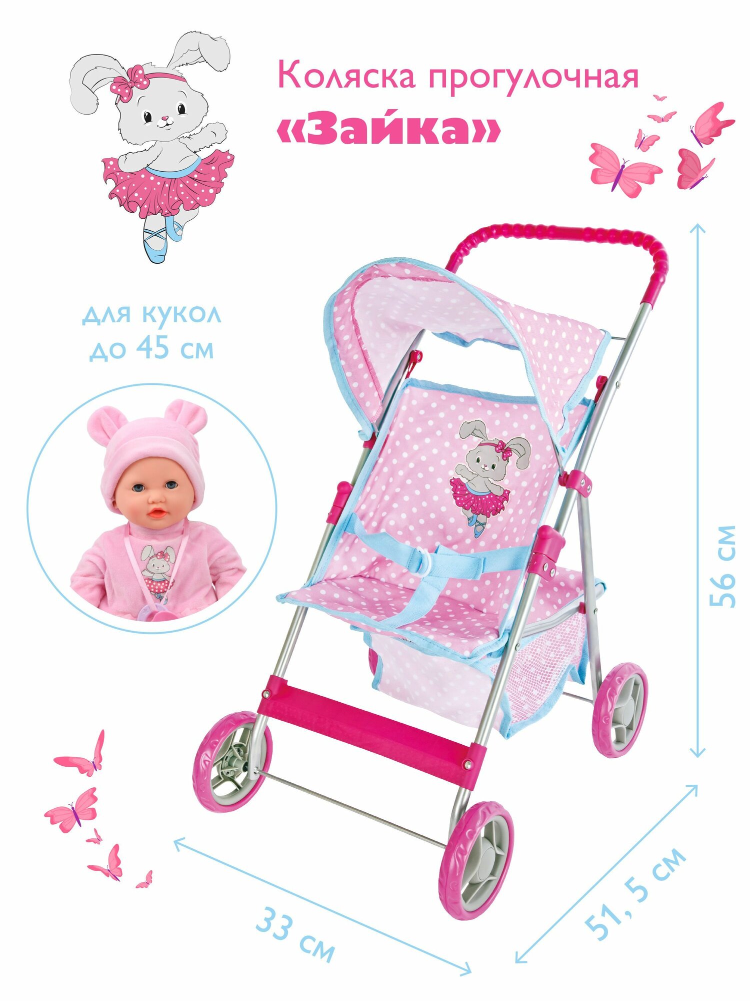 Коляска прогулочная "Зайка" 51,5*33*56см, цветная коробка