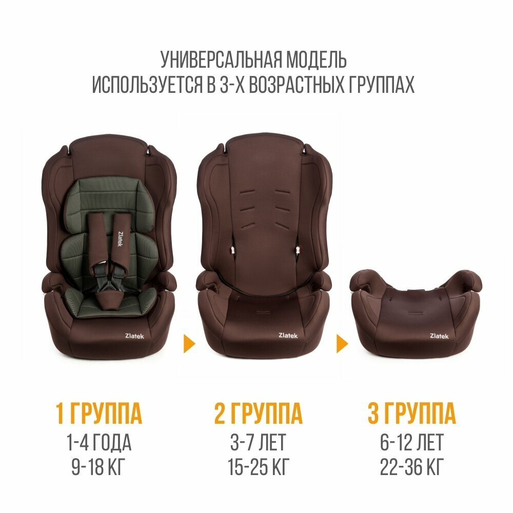 Автокресло ZLATEK ZL513, lux, коричневый Atlantic, гр. I/II/III, 9-36 кг, 1-12 лет 9-36 кг