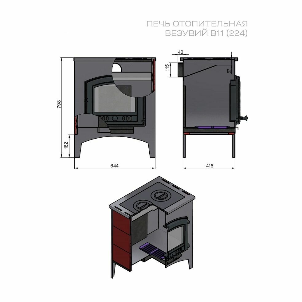 Печь отопительная Везувий В5С диаметр дымохода: 115 мм