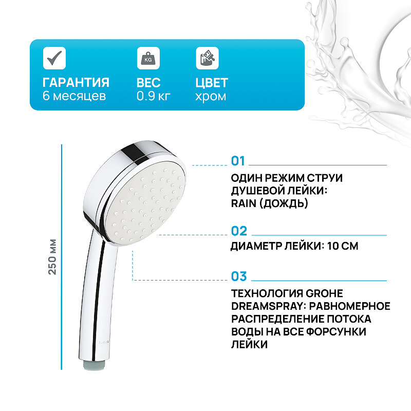 Ручной душ GROHE New Tempesta Cosmopolitan 100 I, хром (26082002)