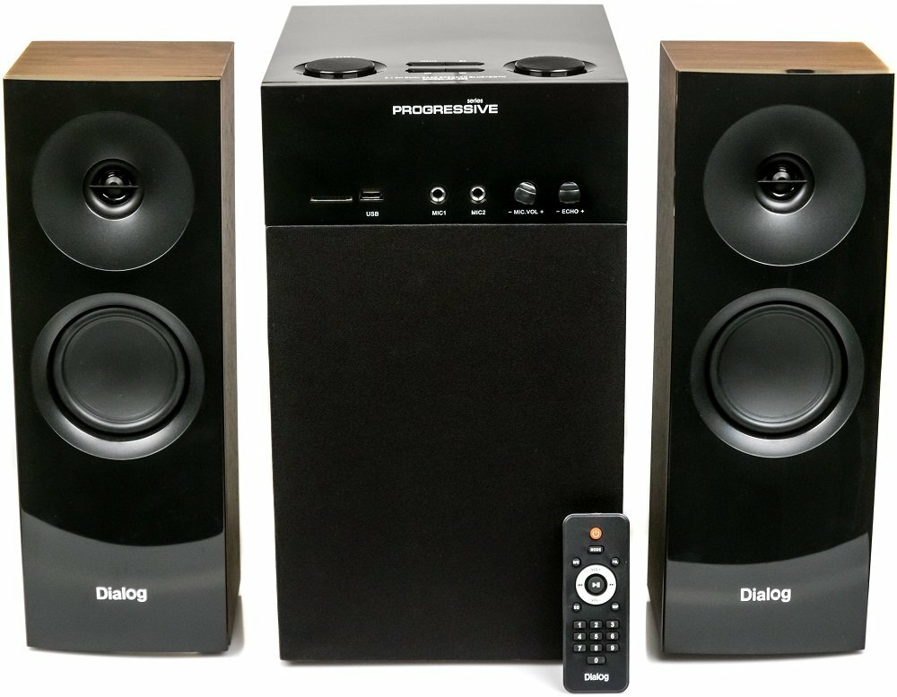 Dialog Progressive AP-250 BROWN (2.1, 50W+2*15W RMS, Караоке, Bluetooth, FM+USB+SD, Оптический вход)