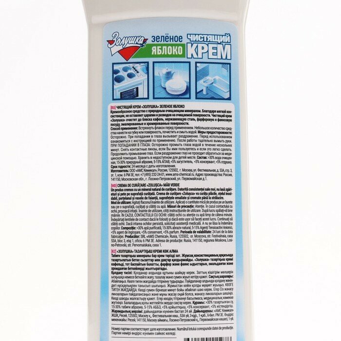 Золушка Чистящий крем Зеленое яблоко 300мл интересное: