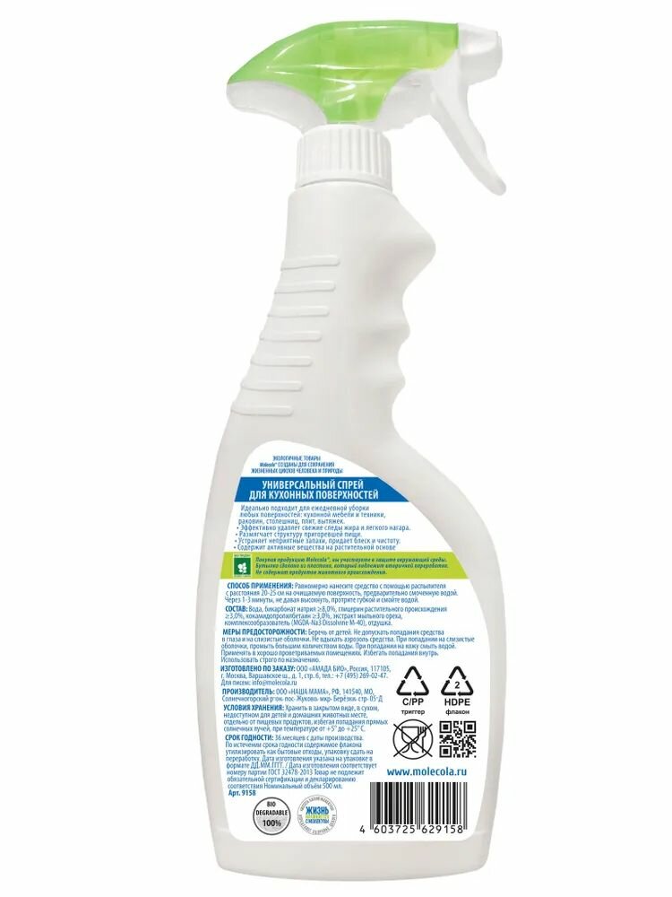 MOLECOLA - Универсальный спрей для кухонных поверхностей Дикая яблоня экологичный, 500 мл
