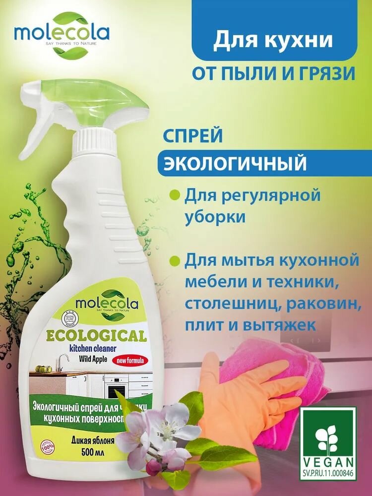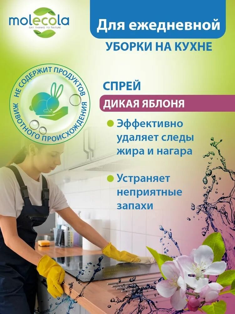 MOLECOLA Универсальный спрей для кухонных поверхностей Дикая яблоня экологичный, 500 мл