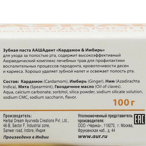 "Зубная паста Aashadent Кардамон и Имбирь, 100 мл"