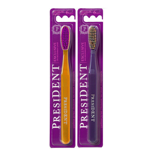Набор: зубная щетка средняя PRESIDENT Exclusive 6 МИЛ 2 шт цвет в ассортименте