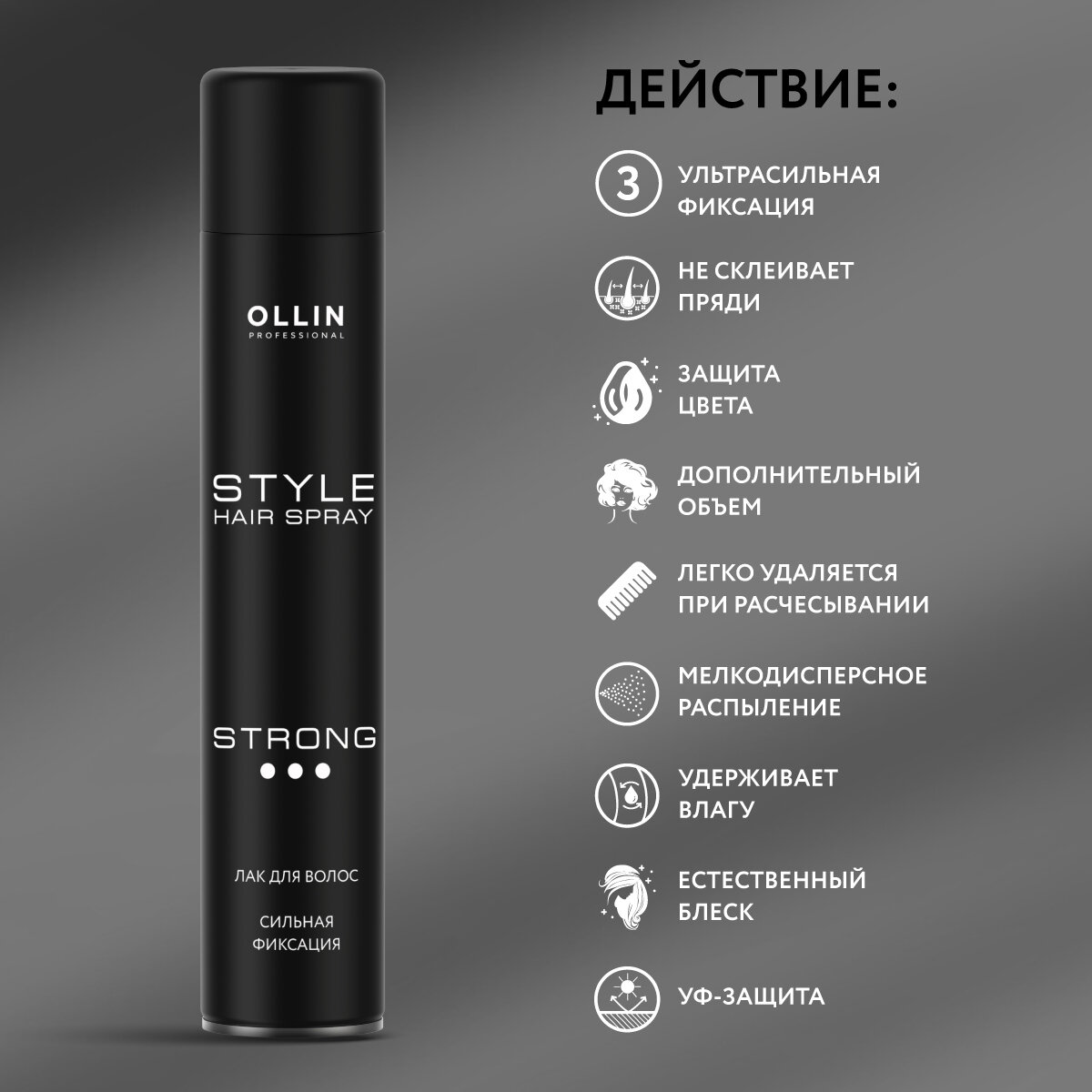 Лак Ollin Professional Strong Hair Spray, 500 мл