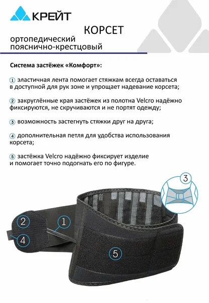 Крейт Корсет ортопедический пояснично-крестцовый - "Крейт" (№6, черный) Б-502/4МР