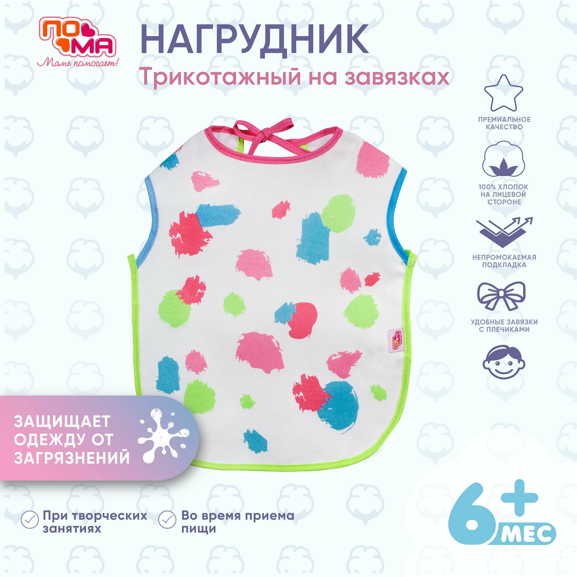 Слюнявчик трикотажный для кормления новорожденных 1 шт 6 мес+ интересное: