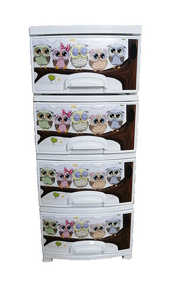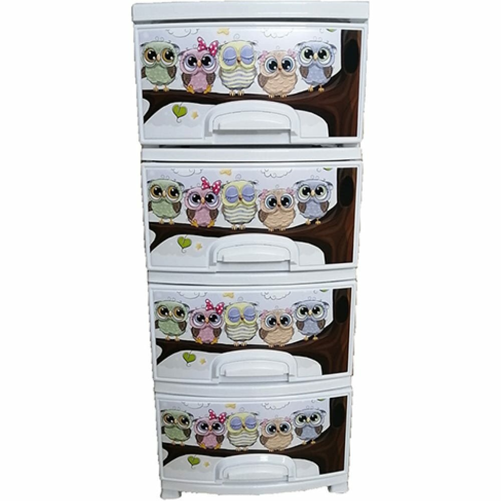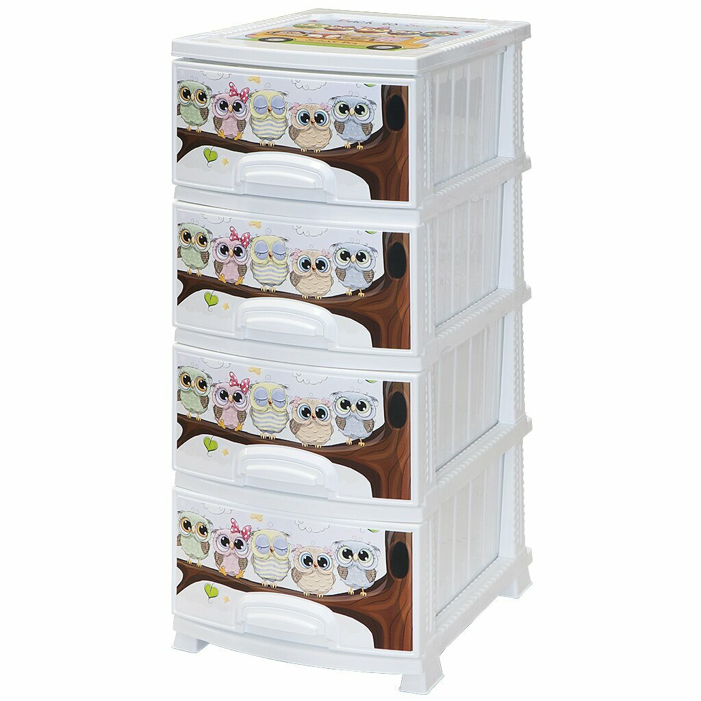 Комод декор 4 ярус Совушки белый В95*Ш38*Г47