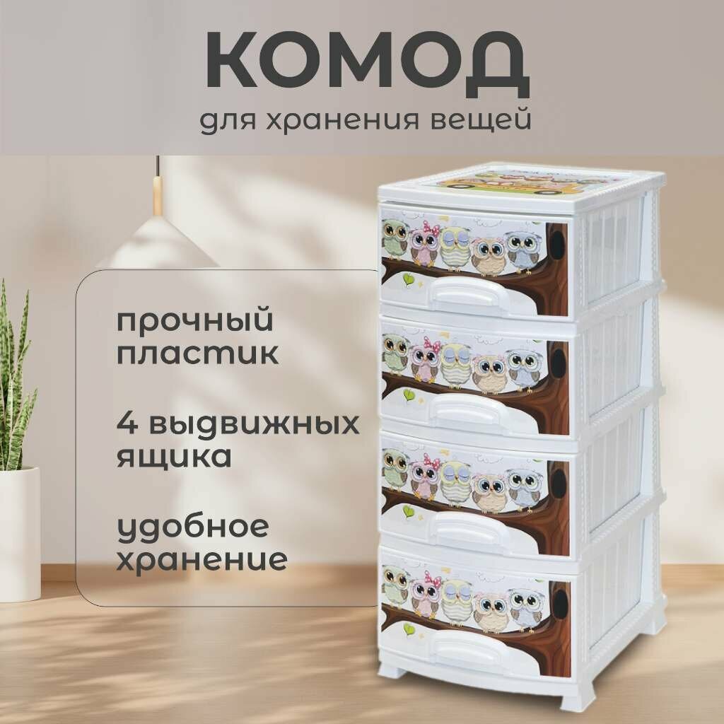 Купить Комод 4-х секционный «Совушки», цвет белый