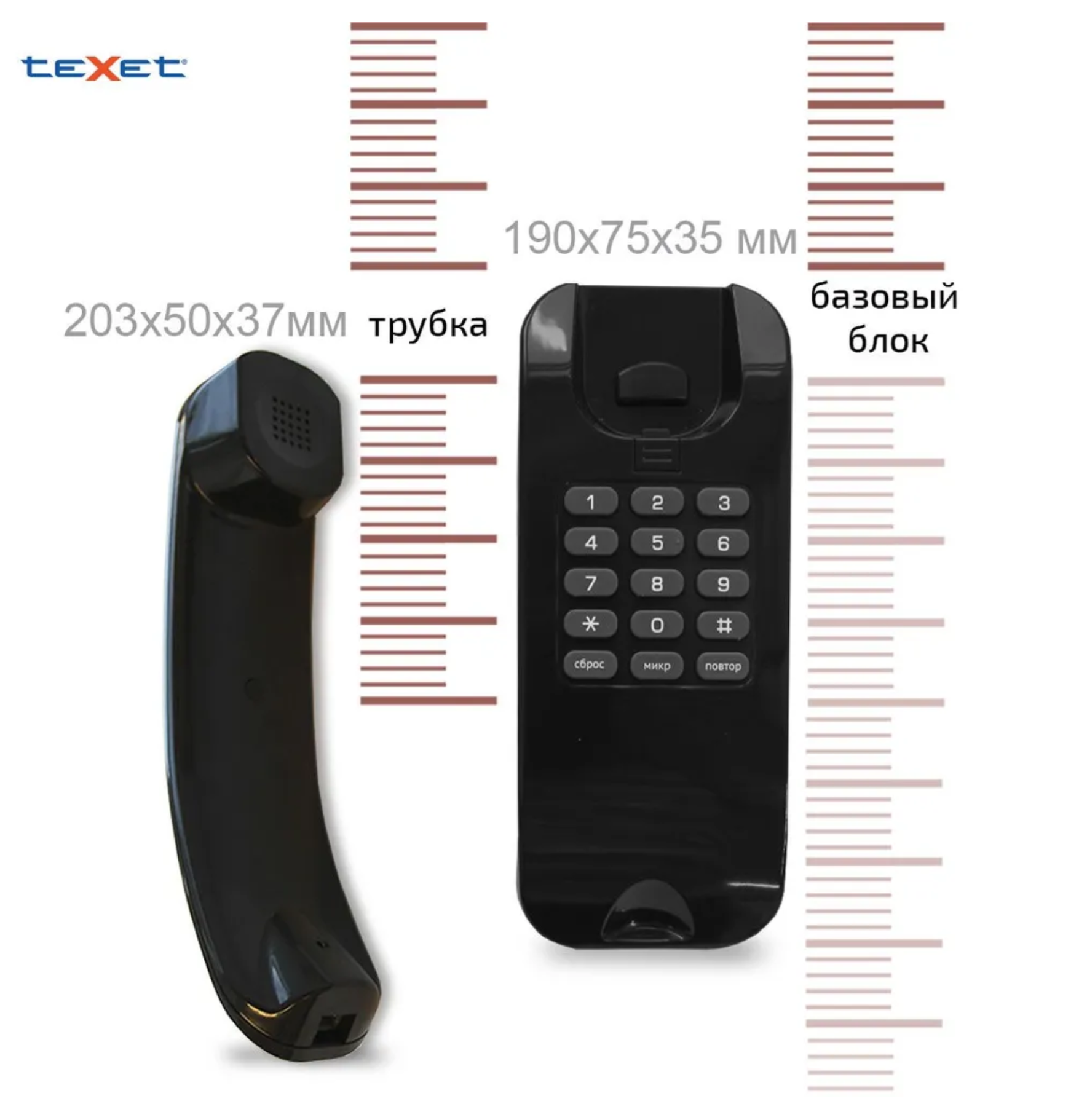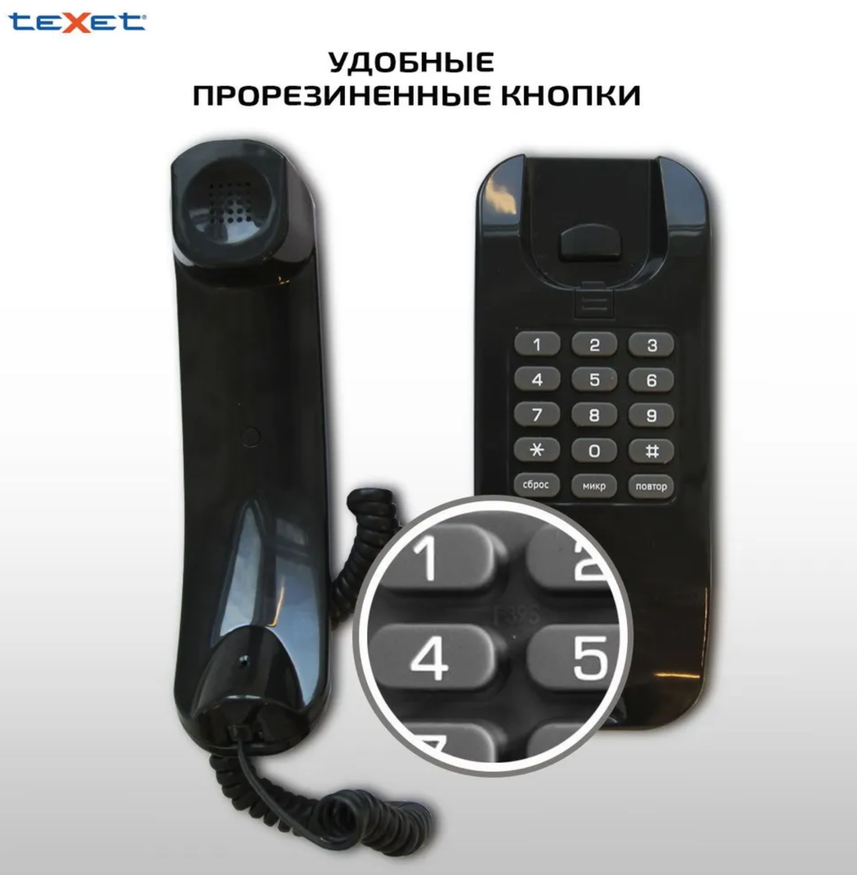 Телефон проводной teXet ТХ-215, повторный набор, компактный размер, черный ( Артикул 337862 )