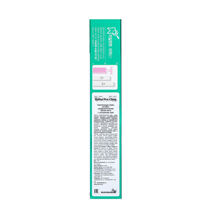 Зубная паста 130 гр, herb fragrant, Xylitol Pro Clinic green color, Mukunghwa, 8801173901444