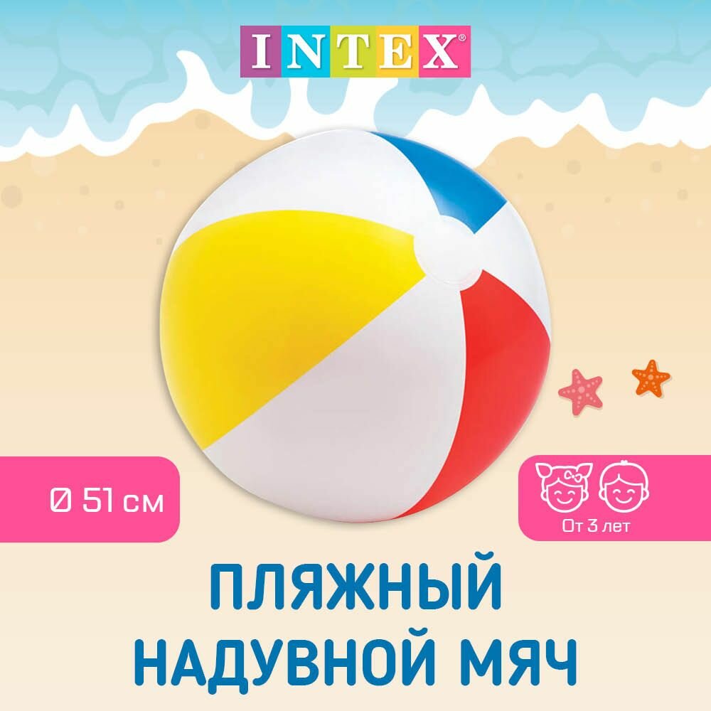 Надувной пляжный мяч INTEX разноцветный для игр в воде и на суше, диаметр 51 см