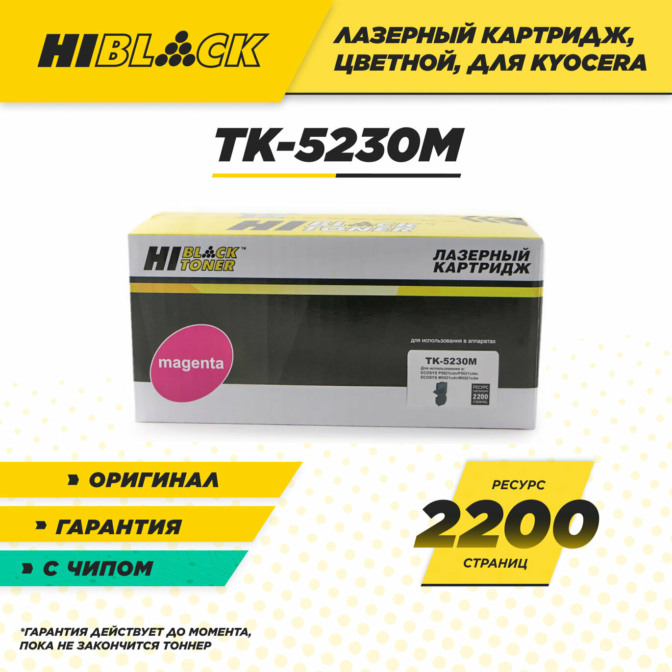 Тонер-картридж Hi-Black TK-5230M для лазерного принтера Kyocera ECOSYS P5021cdn/M5521cdn, Magenta(пурпурный), 2200 стр.