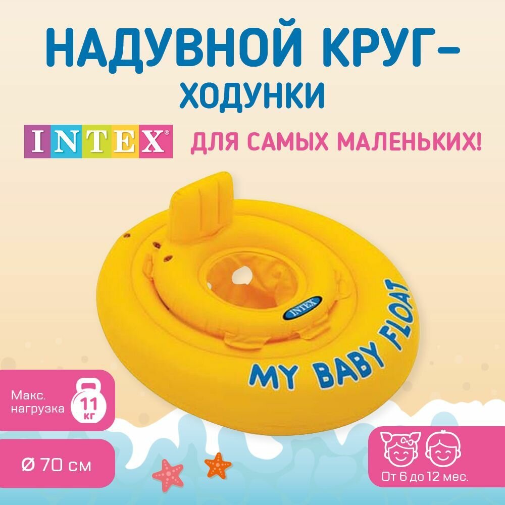 Надувные водные ходунки 70см My Baby Float, от 6 до 12 месяцев, до 11кг, INTEX