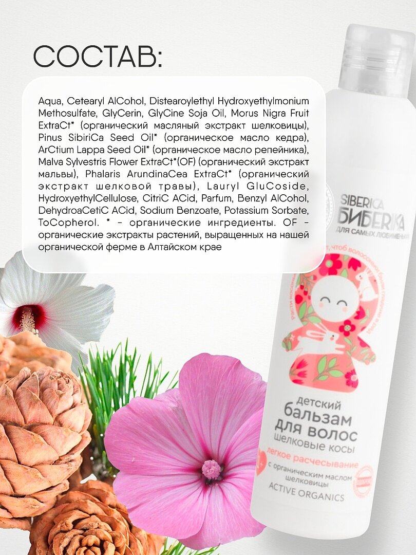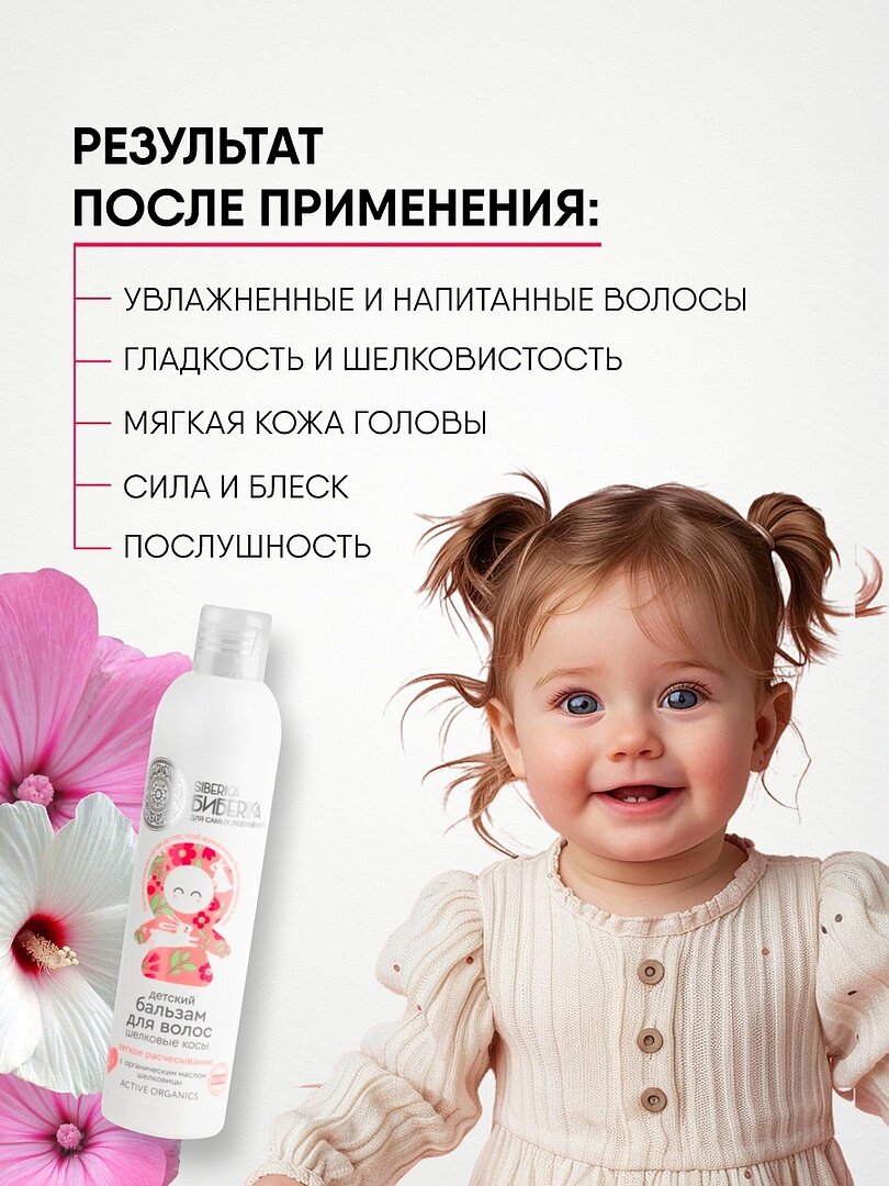 Siberica Biberika Детский бальзам для волос легкое расчесывание "Шелковые косы", 1+, 250 мл, Siberica Biberika