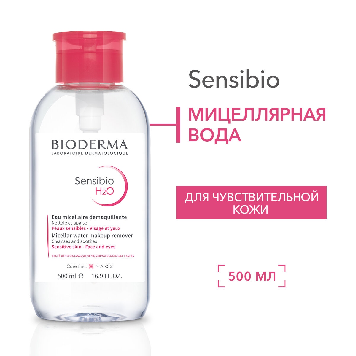 BIODERMA Sensibio H2O Мицеллярная вода для очищения нормальной и чувствительной кожи лица (помпа), 500 мл