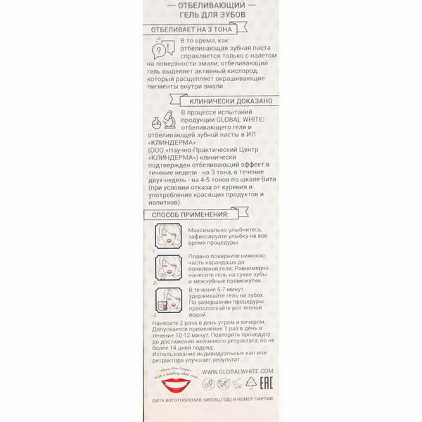 СохранитьGLOBAL WHITE Карандаш для зубов отбеливающий, 5 мл интересное: