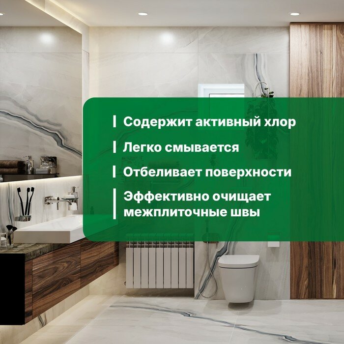 | Плюсы: | Очень хорошо отмывает стены в ванной. |