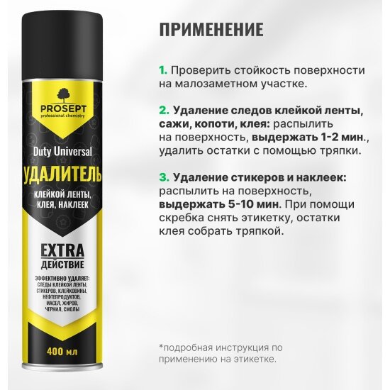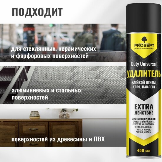 Удалитель наклеек и следов клея Prosept Duty Universal, аэрозоль, 400 мл