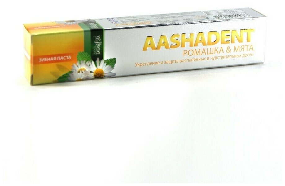 Зубная паста AASHADENT ромашка И мята укрепление и защита воспалённых и чувствительных дёсен, Aasha Herbals, 100 г.