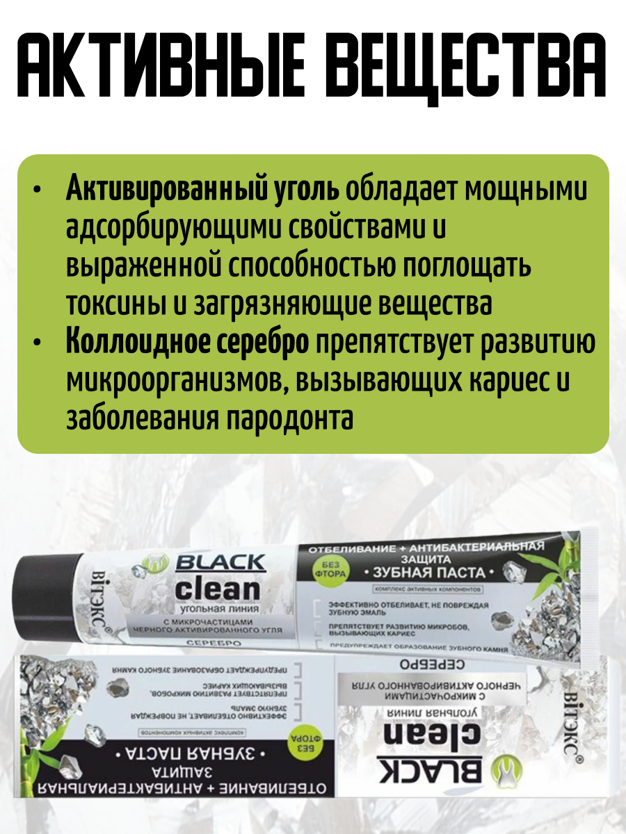 Витэкс Зубная паста BLАCK CLEAN, отбеливание, антибактериальная защита, с серебром, 85 г