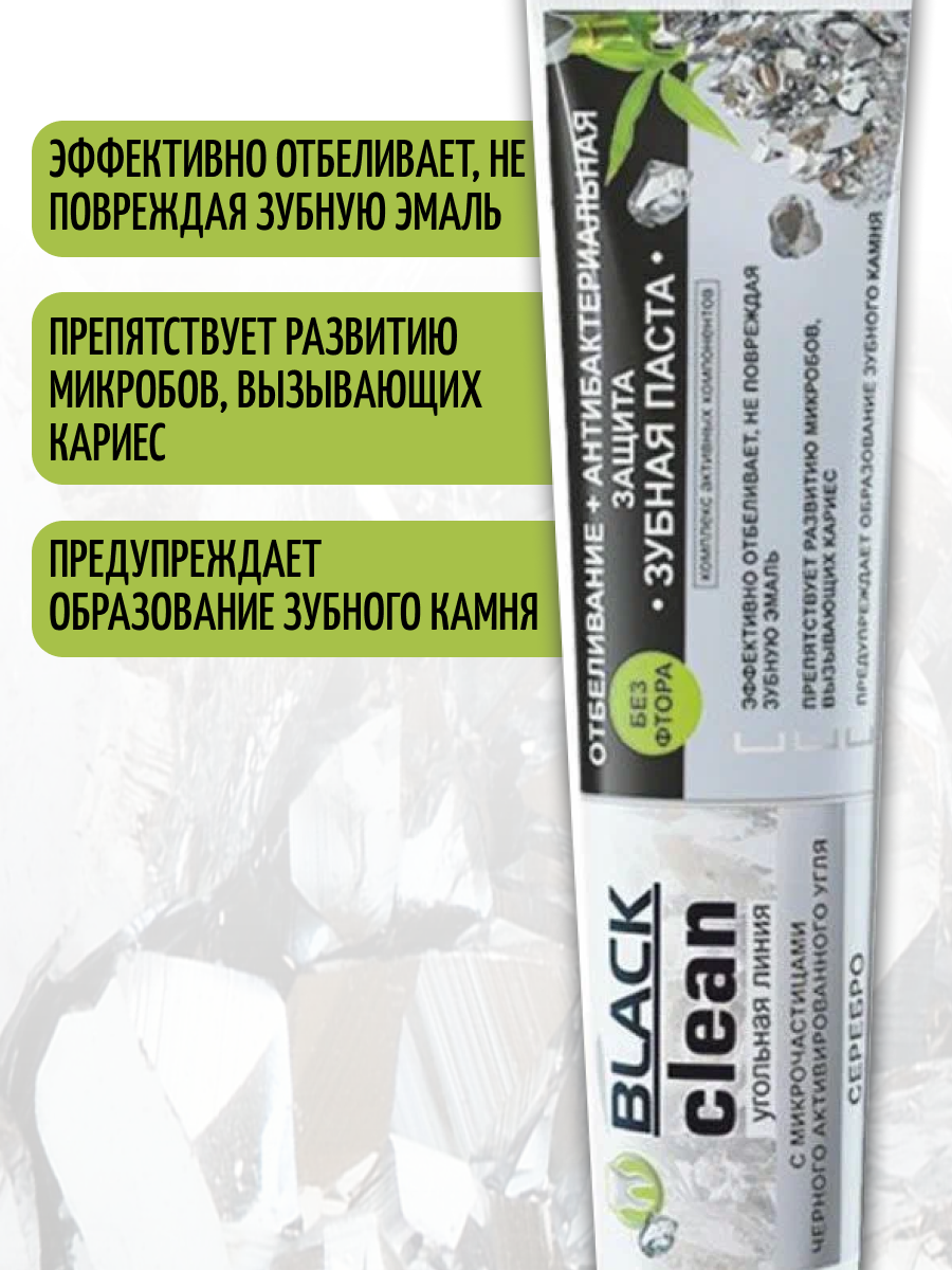 Black Clean Зубная паста Отбеливание + Антибактериальная защита с микрочастицами черного активированного угля и серебром,гелевая 85г