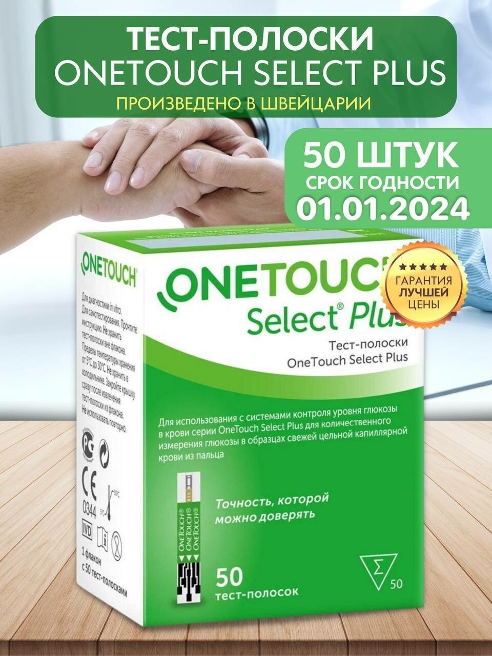Тест-полоски ONE TOUCH SELECT PLUS 50 штук для глюкометра