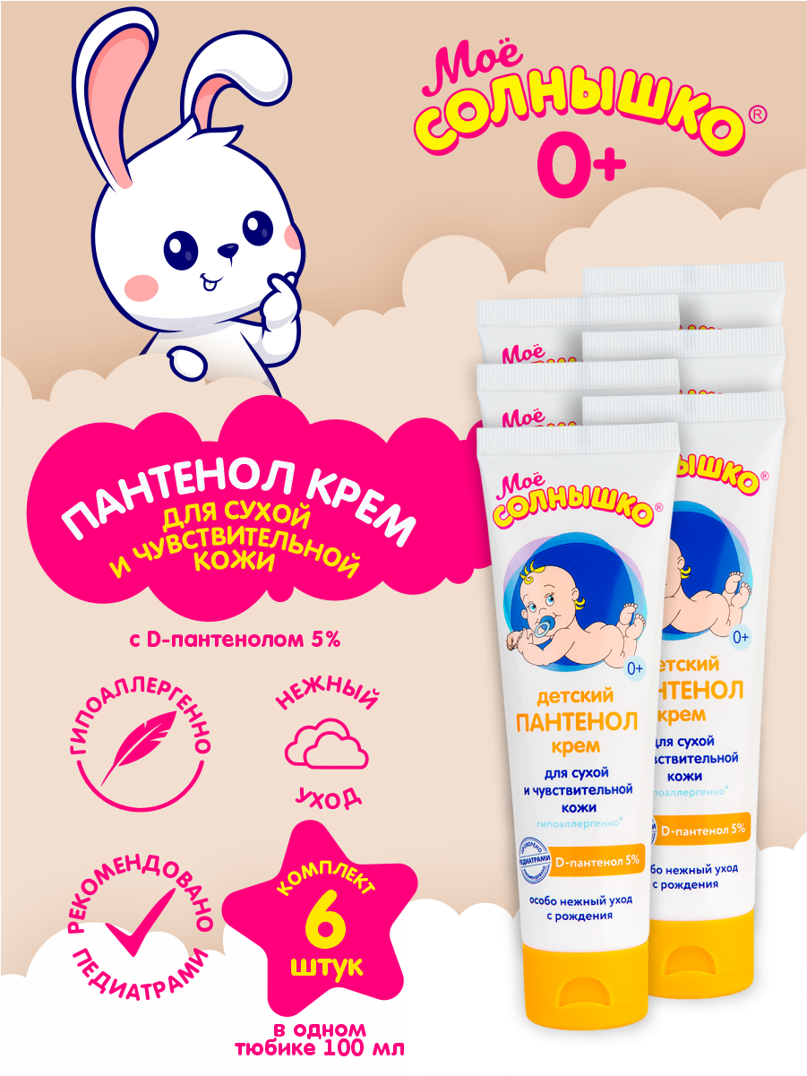 Купить Крем детский Пантенол для ухода за сухой и чувствительной кожей Мое Солнышко 100 мл. х 6 шт