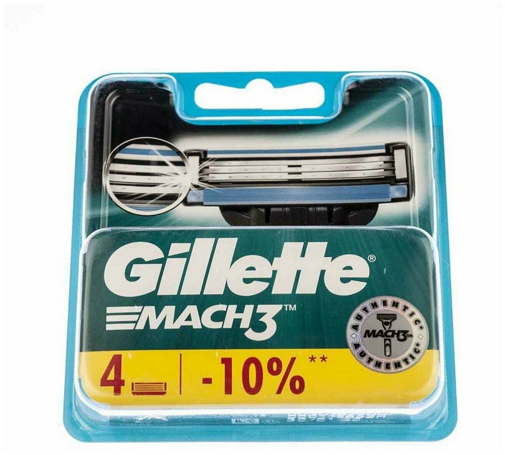 GILLETTE Mach 3 Сменные кассеты для бритья с 3 лезвиями, мужские, 4 шт