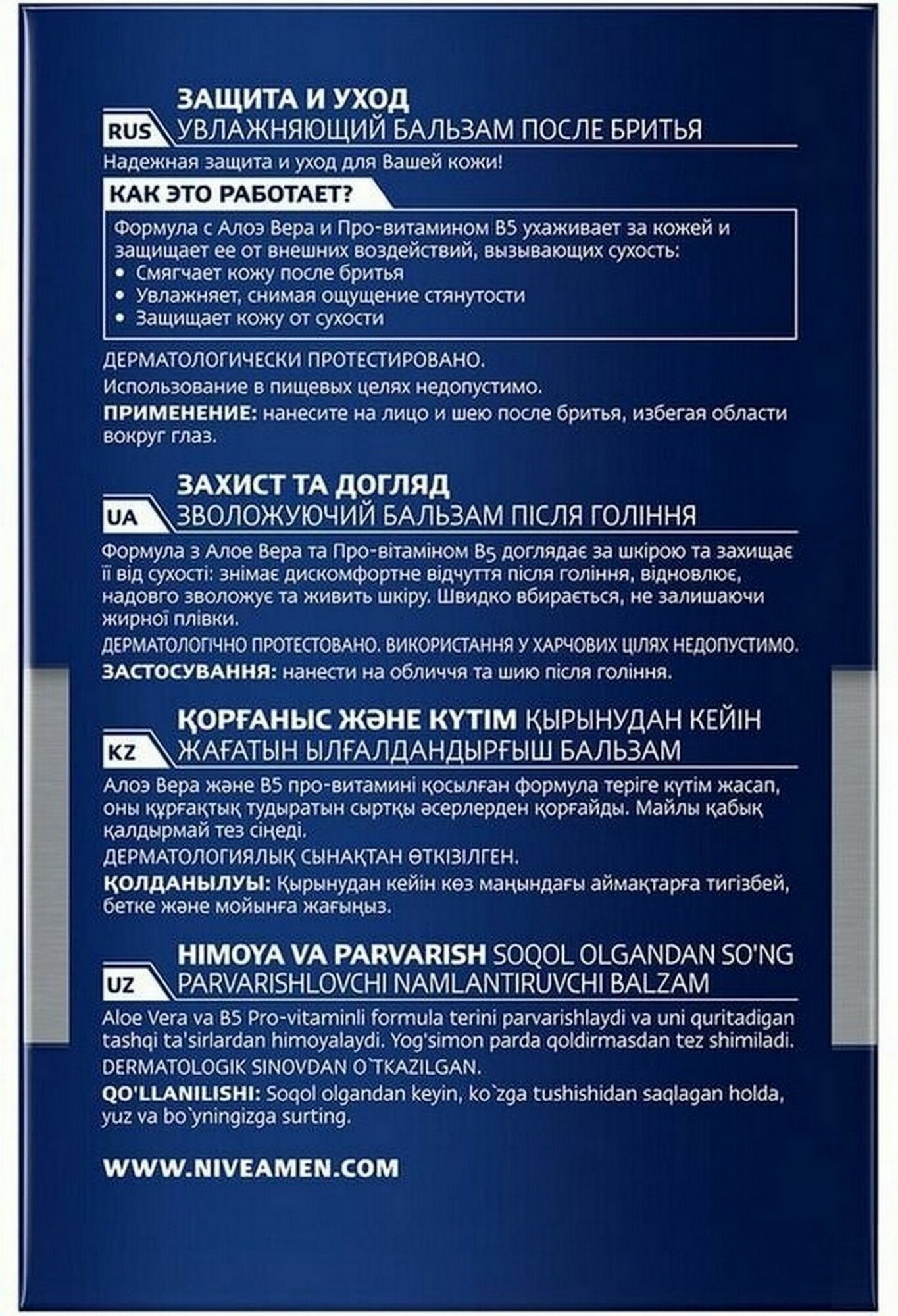 Бальзам после бритья NIVEA Men Защита и Уход увлажняющий, 100мл