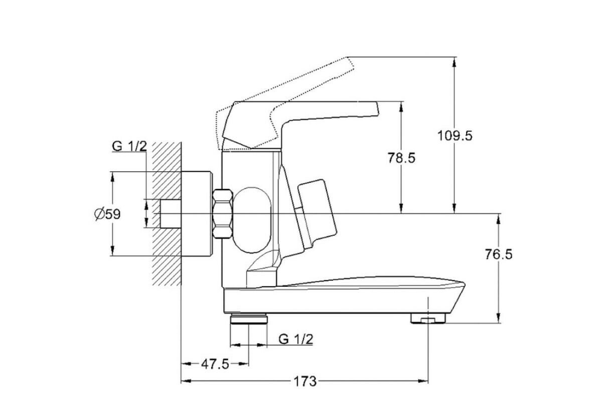 смеситель G.Lauf для ванны с литым пов. изливом 150мм, ø35, встр. переключение LEF3-A232
