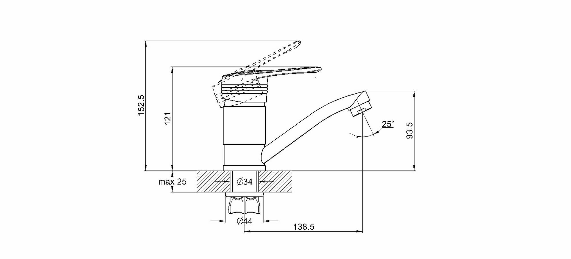 Смеситель для кухни, кор.излив, карт.40мм, гайка G.Lauf0 4G4-B018