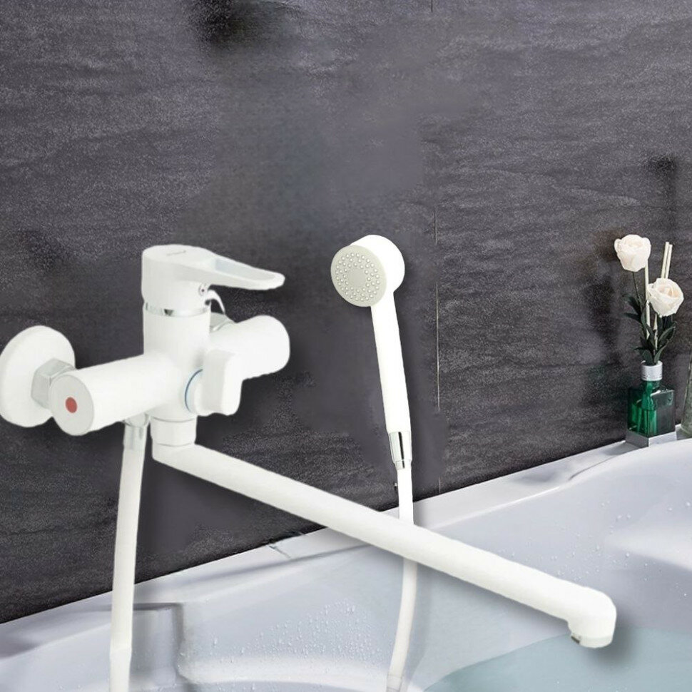 Смеситель для ванны с душем, лейкой, шланг 1,5 м, кран для ванной G.lauf NUD7-A045YW, белый