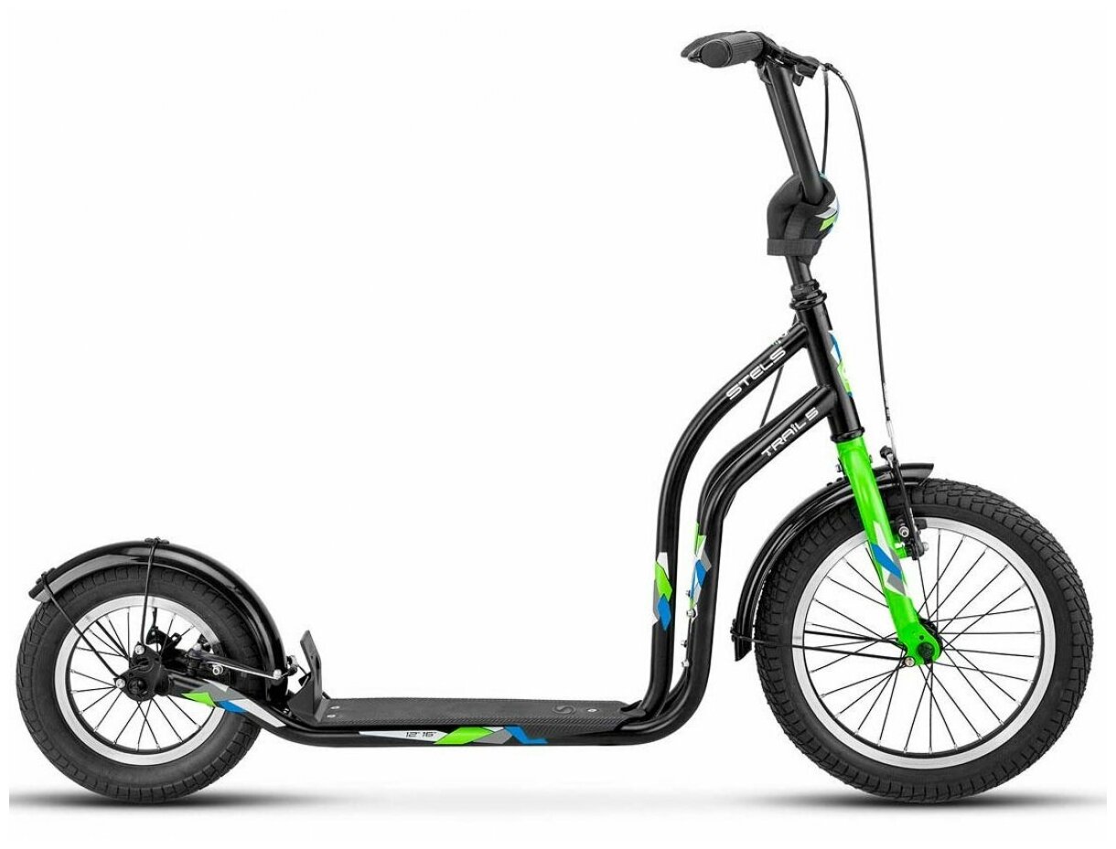 Самокат Stels Trail-5 16"/12" V010, Чёрный/зелёный