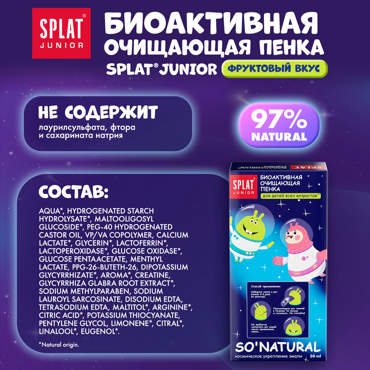 Пенка для полости рта Splat Junior кальций и молочные ферменты, 50 мл