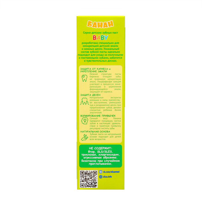 Купить Детская зубная паста SILCAMED BABY Банан 1+, 65 г