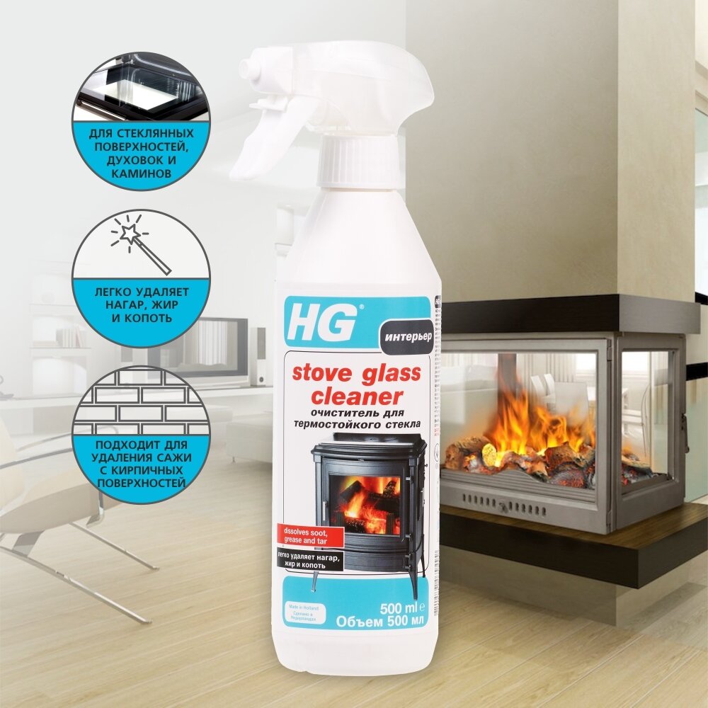 Спрей HG Stove Glass Cleaner для стекол печей и каминов, 500 мл