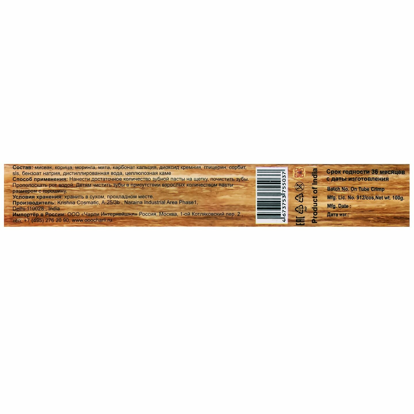 | Тип | зубная паста |