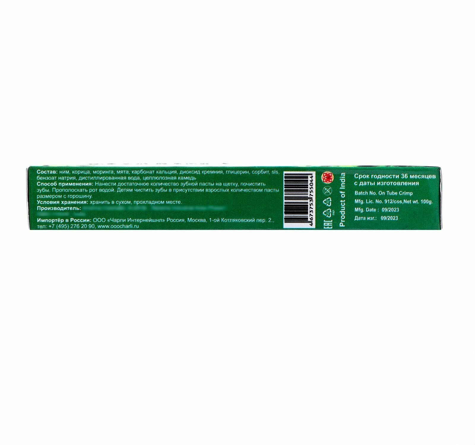 Зубная паста НИМ аюрведическая Дант Карма Ним (Neem), 100 г Индия