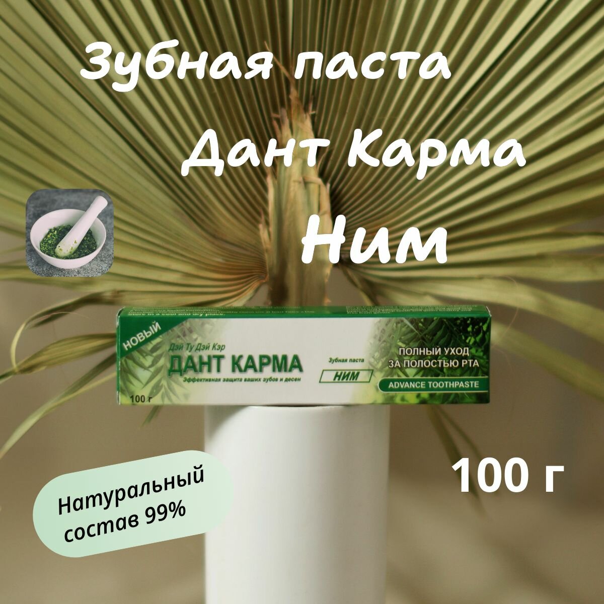 3 шт Зубная паста НИМ аюрведическая натуральная травяная DANT KARMA Ним (Neem), 100 г