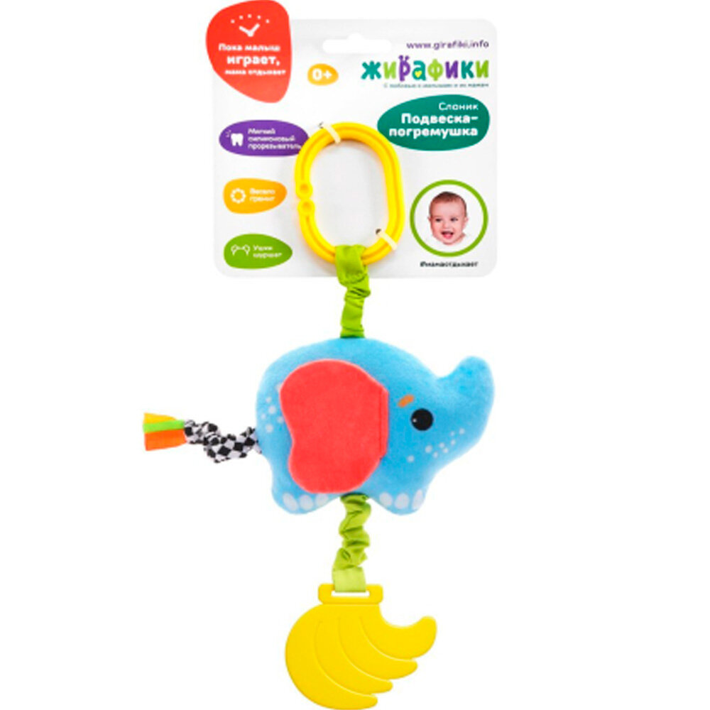Подвеска большая "Слоненок Тим" с прорезывателями и погремушками Жирафики 93596